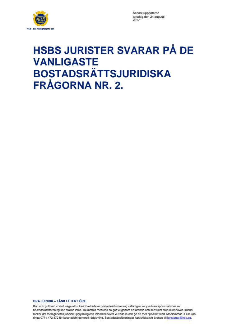 HSBs jurister svara på de vanligaste bostadsrättsjuridiska frågorna. 2.