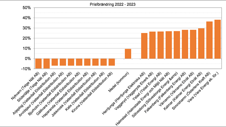 En kartläggning från Nils Holgerssongruppen visar att det är stor skillnad mellan de olika kommunerna och stor skillnad mellan hur de olika stora privata elnätsföretagen har agerat. Eon har kraftigt höjt sina priser (19–23 %), Ellevio har höjt sina priser (5–14 %) och Vattenfalls priser har överlag sänkts (-7–0 %).